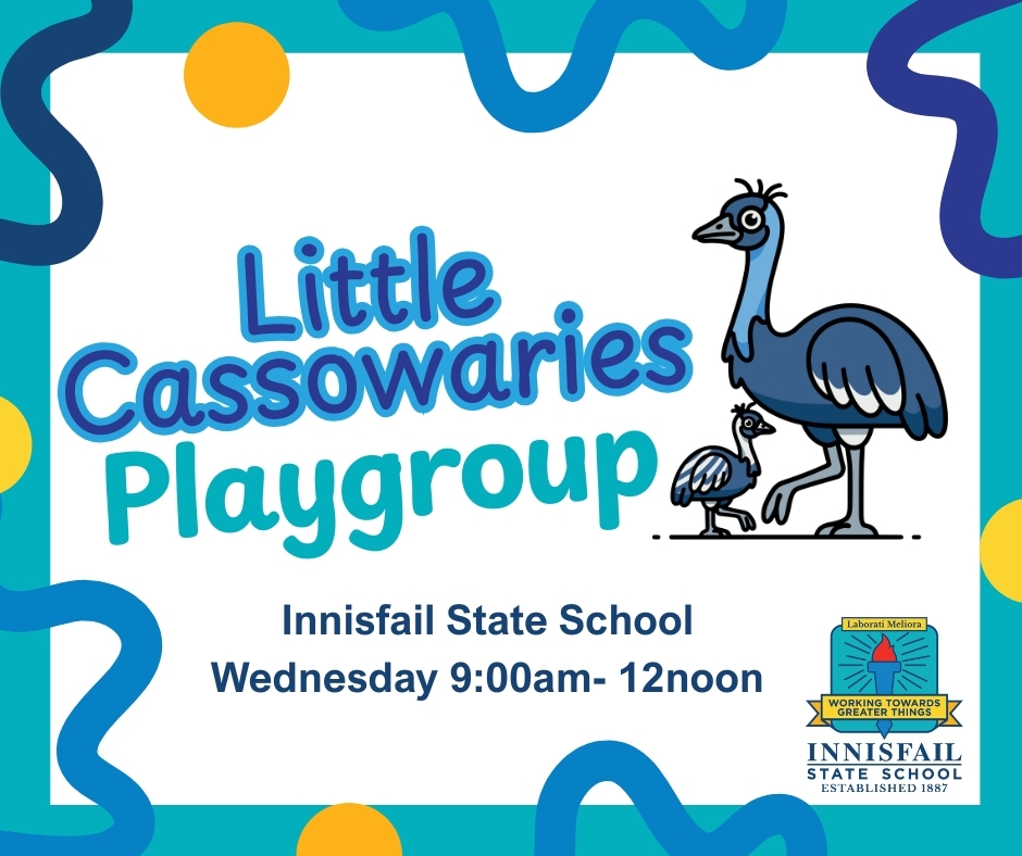 Families with children aged 0-5 are invited to come along to Little Cassowaries playgroup. Playgroup is a free play-based program designed to support early learning and development in a relaxed and welcoming space. Meet other families, connect with educators, and enjoy engaging activities with your little one! 📍 Innisfail State School 🕘 9:00 AM – 12:00 PM 📅 Every Wednesday during school terms No need to book—just come along! We can’t wait to see you there! For more information please call (07) 4061 0333 or email admin@innisfailss.eq.edu.au